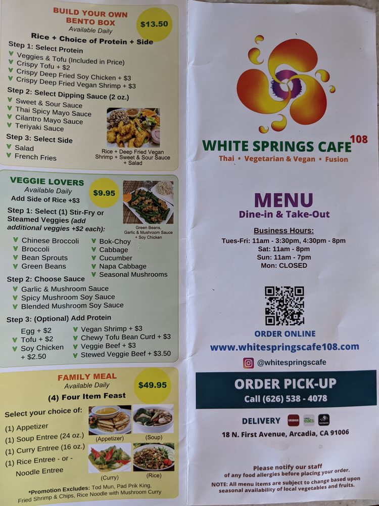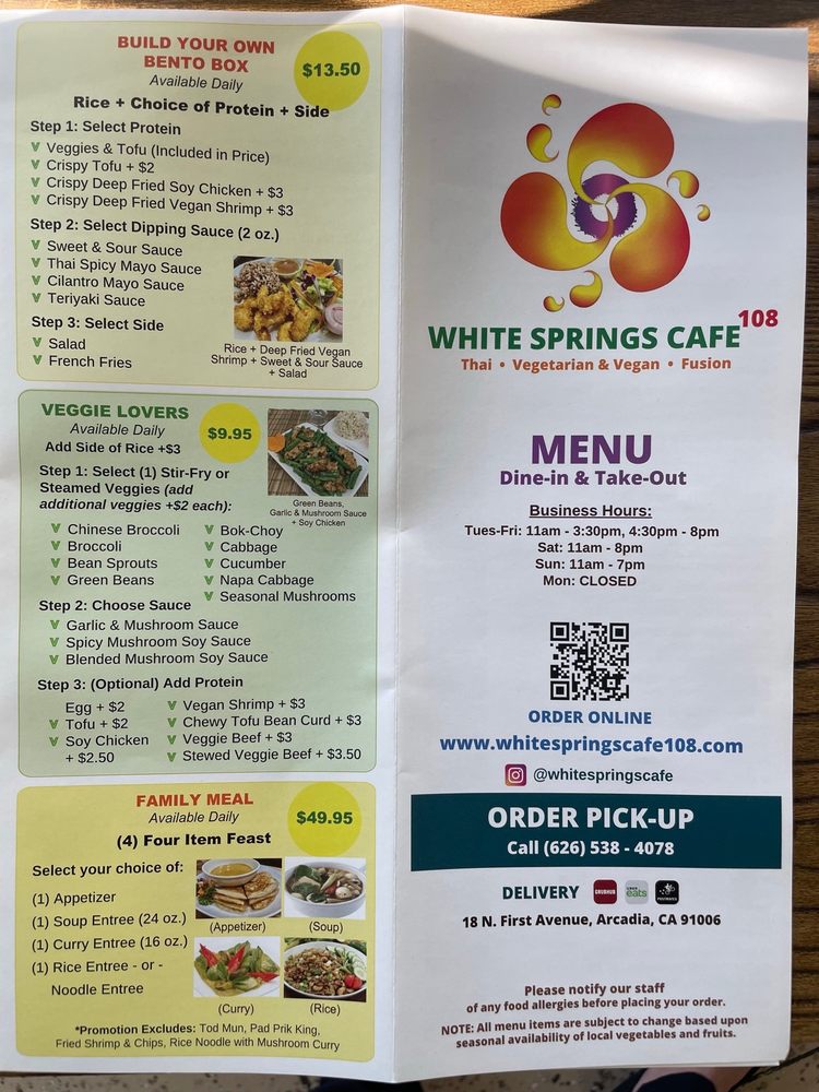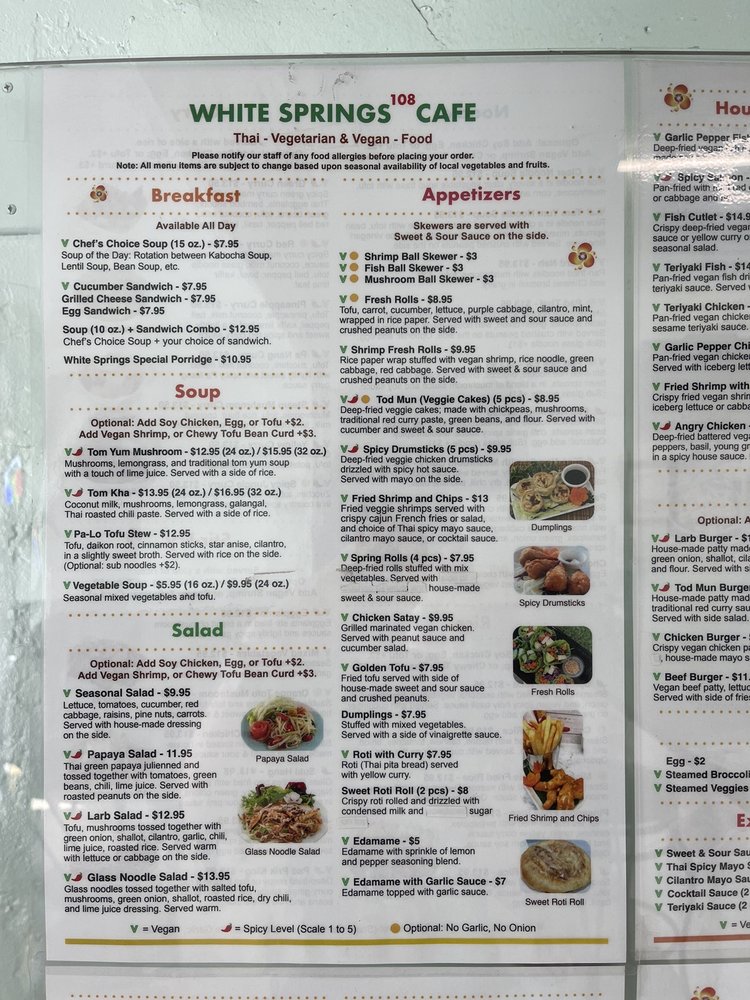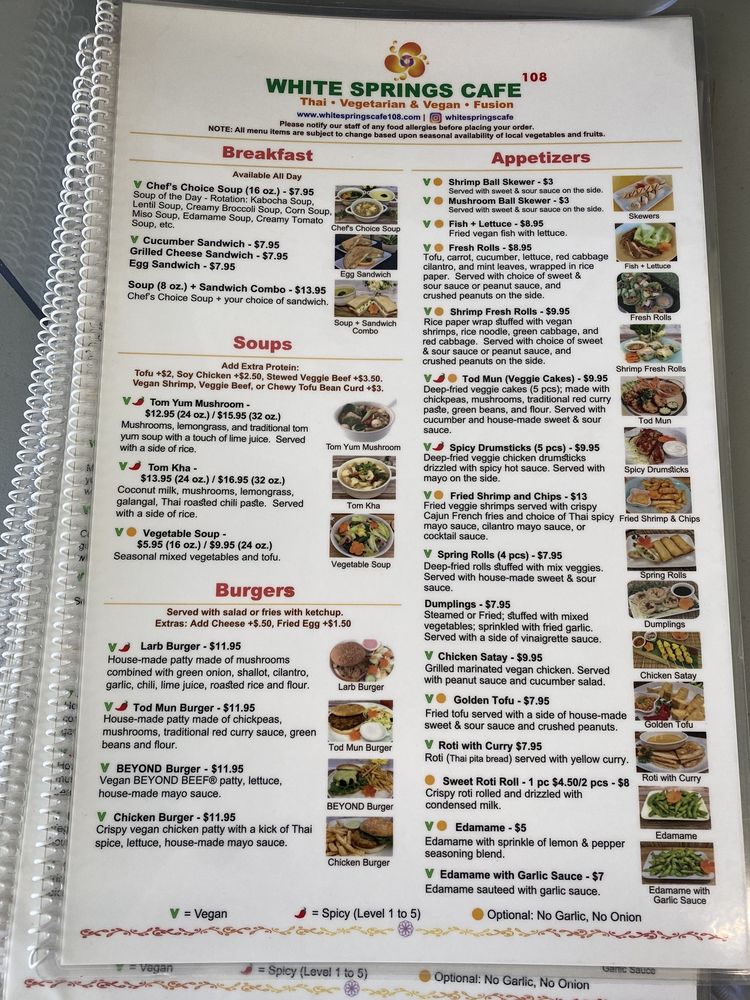 Nestled in Arcadia, White Springs Cafe offers a delightful fusion of Thai flavors with a focus on breakfast, brunch, and soups. This women-owned and Asian-owned establishment prides itself on a diverse menu, featuring numerous vegan and vegetarian options that promise to satisfy every palate.