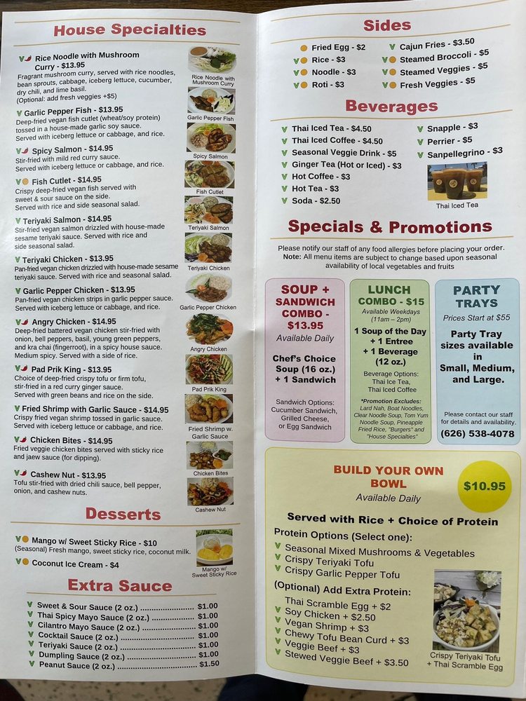 (4) Four Item Feast - Select your choice of: (1) Appetizer + (1) Soup Entree (24 oz.) + (1) Curry Entree (16 oz.) + (1) Rice or Noodle Entree.**Promotion Excludes: Tod Mun, Pad Prik King, Fried Shrimp & Chips, Rice Noodle with Mushroom Curry**Call us to place your order: (626) 538-4078
