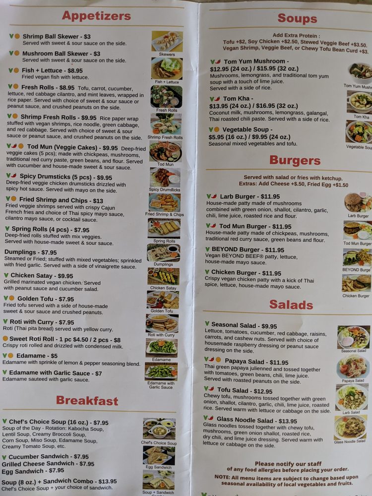 House-made patty made of tofu and mushrooms combined with green onion, shallot, cilantro, garlic, chili, lime juice, roasted rice and flour. Served with side salad. Vegan.